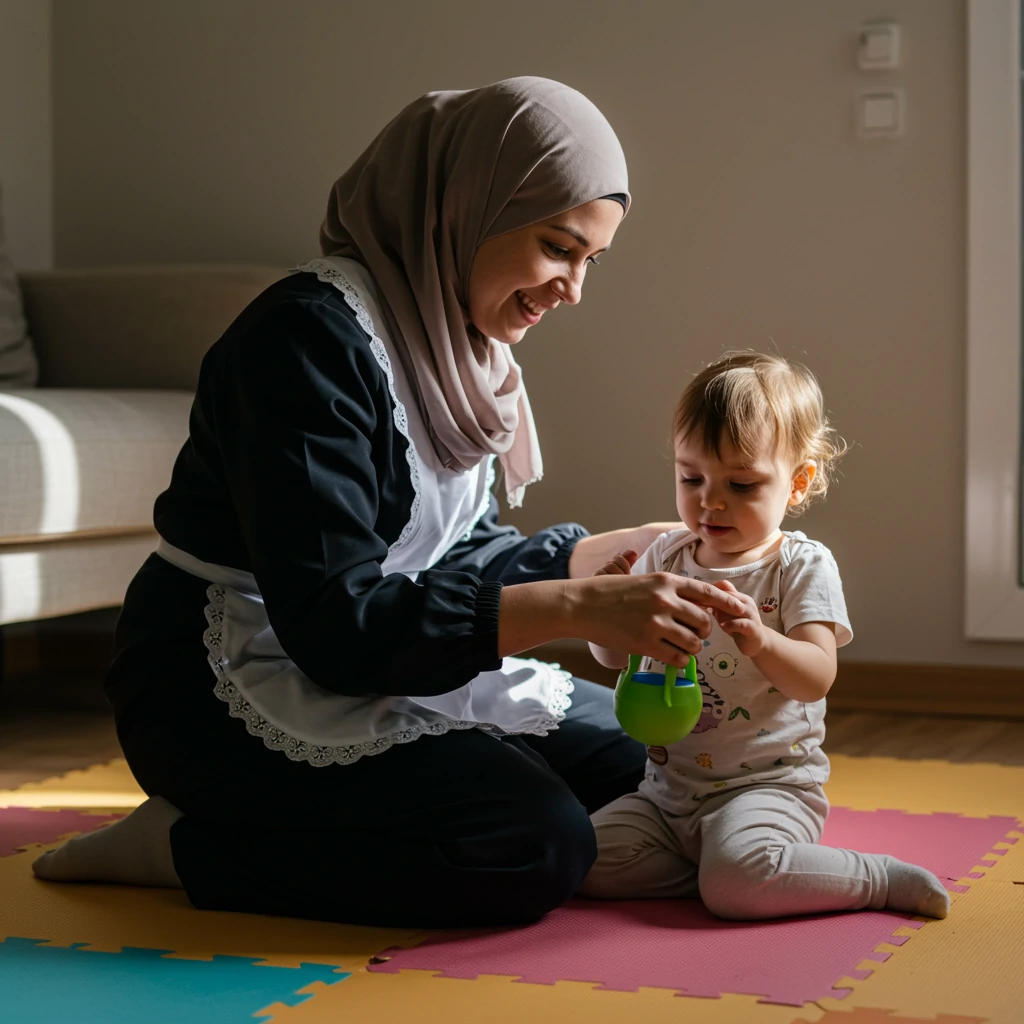 العاملة تكون بمثابة وجه مألوف يشاركهم يومهم، ويمنحهم العناية والتوجيه بدلًا من أن يتركوا مع الغرباء أو في حضانات مزدحمة.